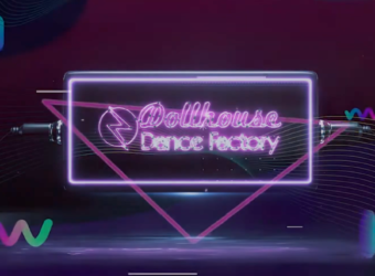The video opens with a futuristic “power-up” sequence, where the Dollhouse Dance Factory logo is brought to life with pulsating neon purple and pink lights. This kinetic identity establishes a high-energy tone from the first second, using a combination of glow effects and electric sparks to capture the studio’s vibrant culture.